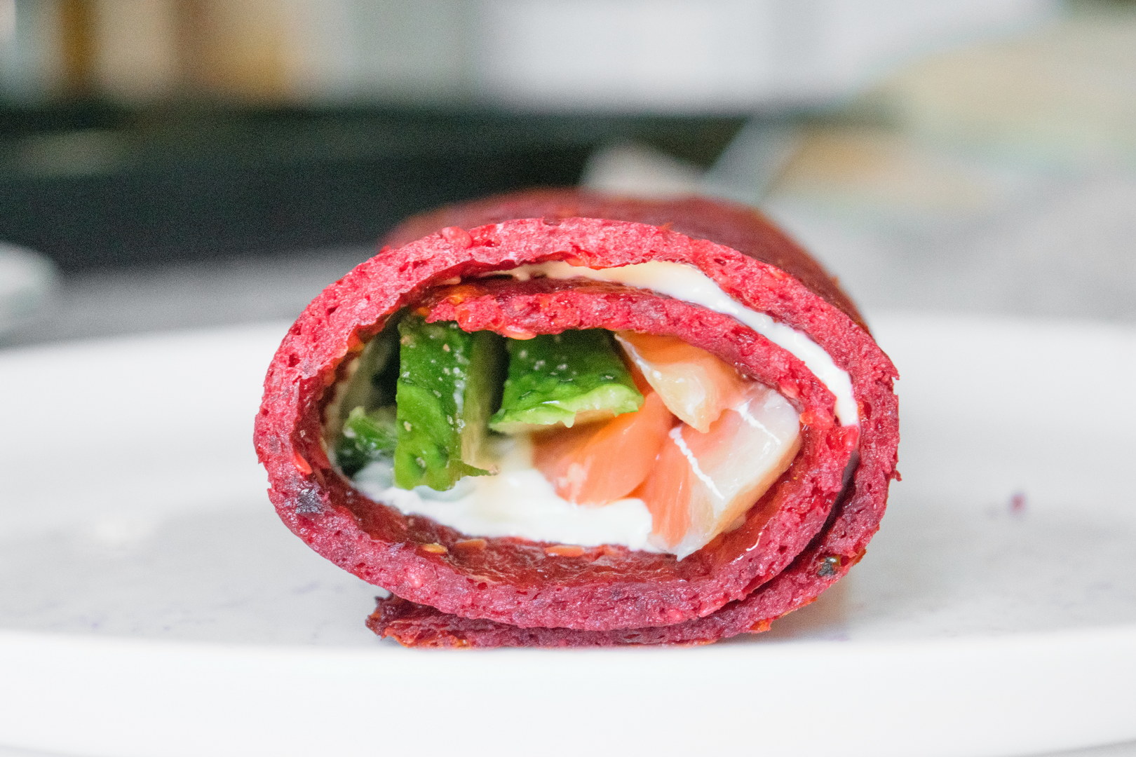Свекольная лепешка получается нежной, с легкой естественной сладостью, которую отлично подхватывает солоноватый сулугуни. Семена льна и кунжута добавляют текстуру и аппетитный хруст. В итоге получается не только красиво, но и вкусно, сытно и очень удобно: можно есть просто так, а можно использовать как основу для начинки.